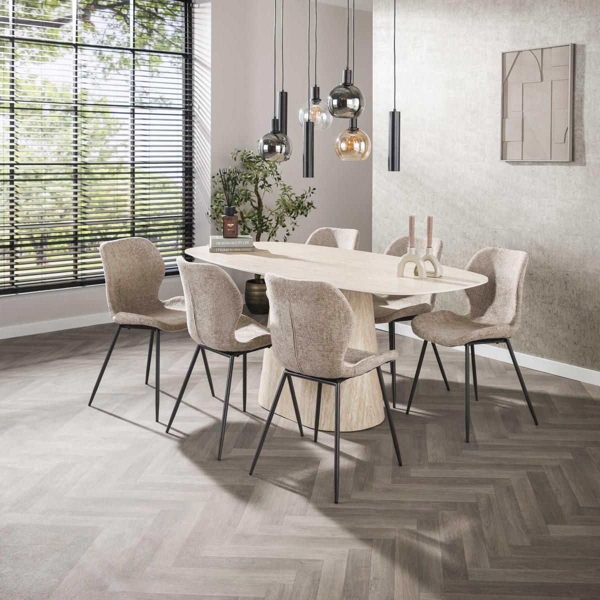 Met zijn uitnodigende vorm en onderhoudsvriendelijke materialen is de Giordano eettafel - deens ovaal - 180 cm - travertin look een prachtige keuze voor wie houdt van comfort, design en veelzijdigheid in het interieur.