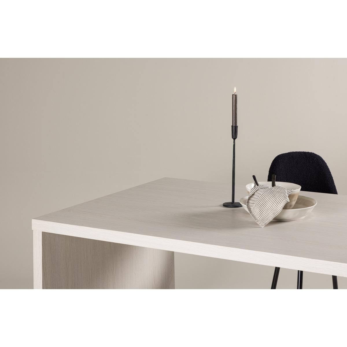 De Martina eettafel - 110 x 230 cm - whitewash is een perfecte combinatie van stijl en functionaliteit, ontworpen om indruk te maken en zorgvuldig doordacht. Het gehele tafelblad is vervaardigd uit whitewashed MDF, wat een elegante en strakke uitstraling aan je eetkamer geeft.
