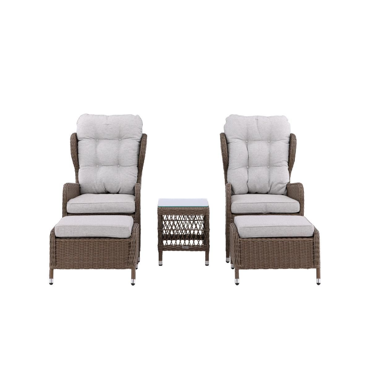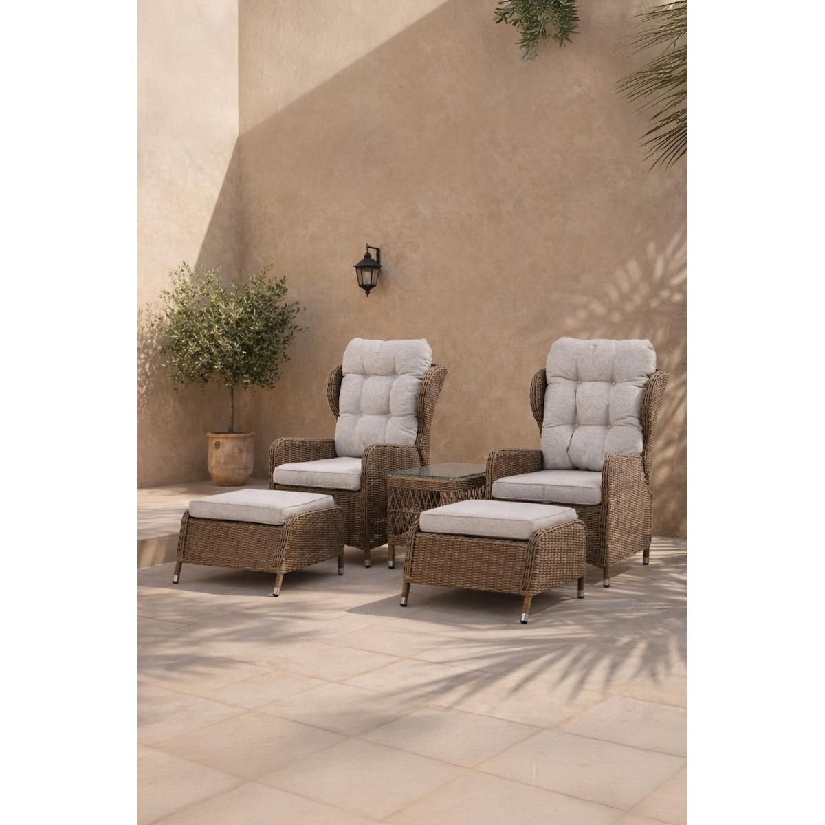 Deze loungeset is ideaal voor wie op zoek is naar een praktische en elegante oplossing voor het buitenleven. Combineer de Omar vouwbare loungeset met zachte kussens en een stijlvolle buitentafel voor een uitnodigende en gezellige sfeer in uw tuin.