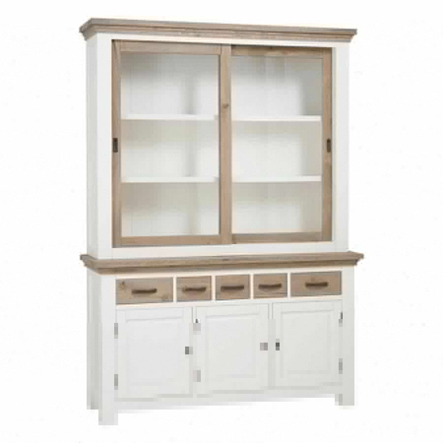 Deze kwalitatieve buffetkast is vervaardigd met aandacht voor detail, wat resulteert in een meubelstuk waar u jarenlang plezier van zult hebben. Het witte frame is gemaakt van grenenhout, dat op enkele plekken subtiel is opgeschuurd om het die charmante landelijke look te geven. De eiken delen, die licht geborsteld en geolied zijn, zorgen voor een warme, natuurlijke tegenhanger. De kast is hier uitgevoerd in het wit, maar de Parma collectie biedt meubels aan die ook goed te combineren zijn met bijvoorbeeld een naturel eiken afwerking. De afmetingen van 150 cm breed, 50 cm diep en 220 cm hoog maken dit een imposant en praktisch meubel.
