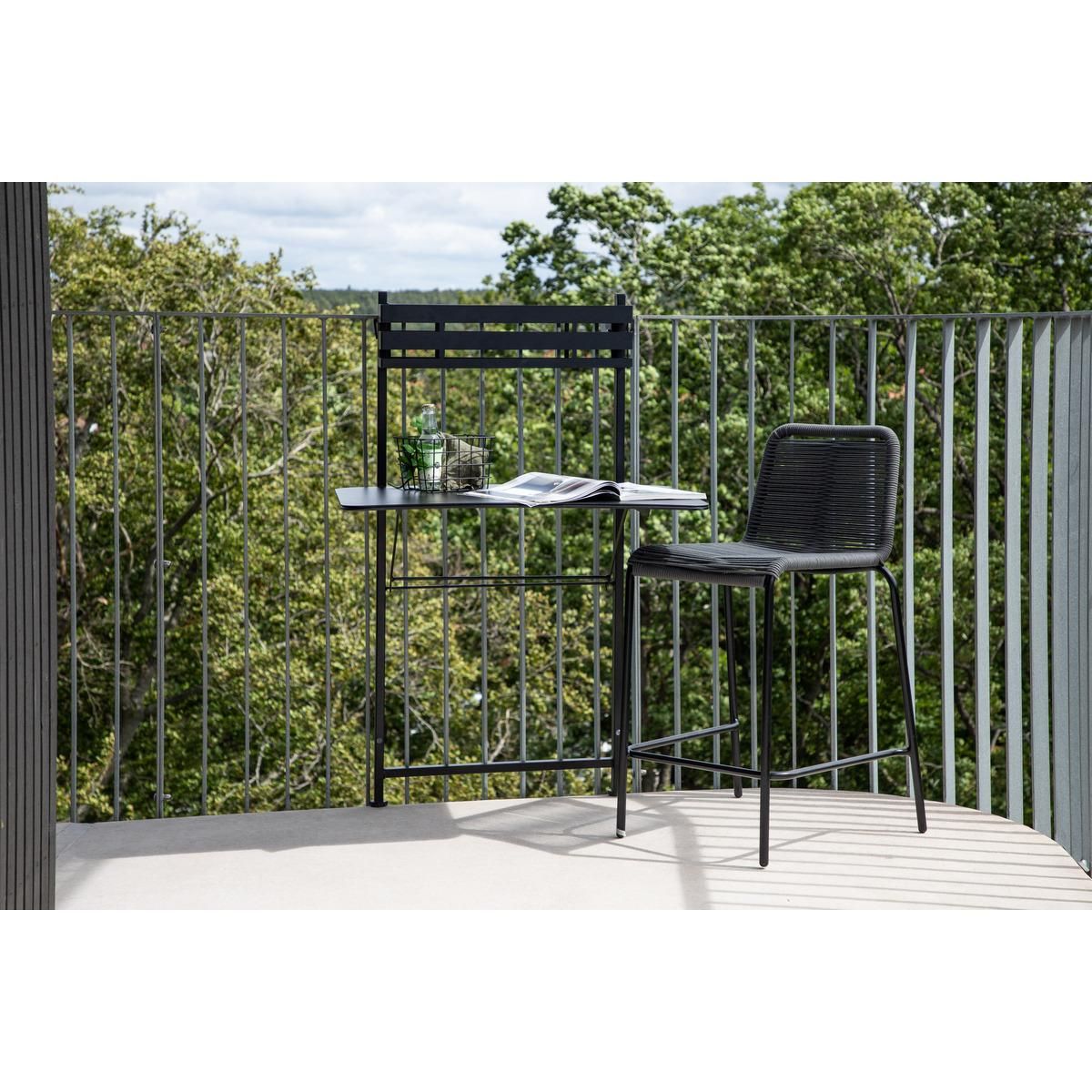 De Selim balkontafel - zwart is de perfecte aanvulling voor uw balkon of compacte buitenruimte. Dankzij het slimme ontwerp benut u elke centimeter optimaal, terwijl het elegante zwarte blad een moderne en stijlvolle uitstraling toevoegt aan uw terras of balkon. De tafel biedt voldoende ruimte voor ontbijt, een drankje of gezellige avonden met vrienden.