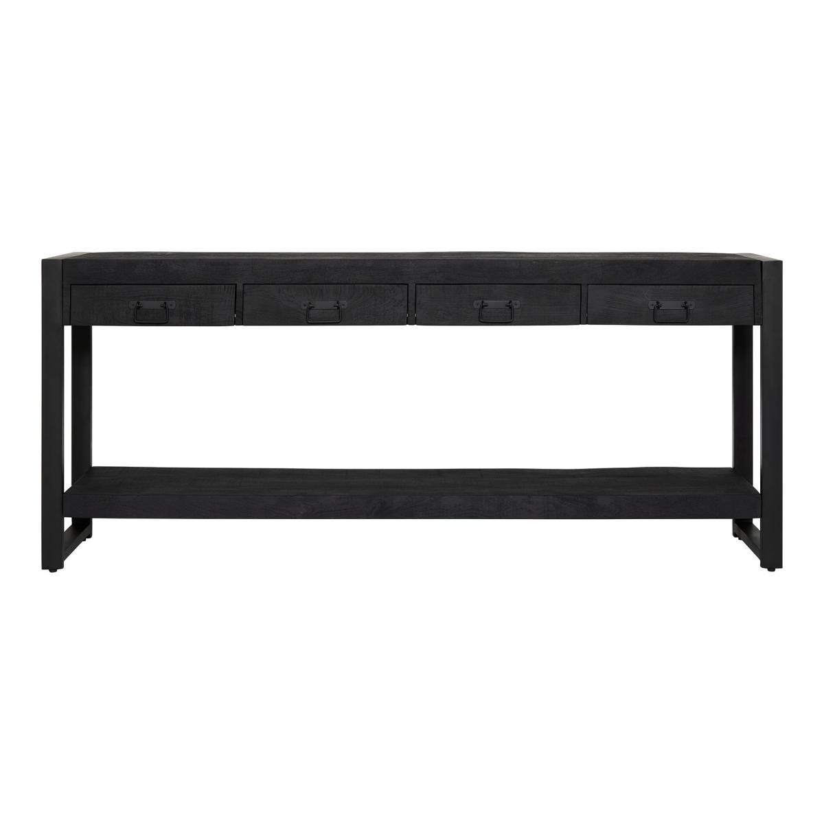 De Sidetable Boaz Black is een stijlvolle toevoeging aan elke woonkamer. Het meubel is uitgevoerd in mangohout en heeft een metalen frame en handgrepen afgewerkt met een zwarte lak.