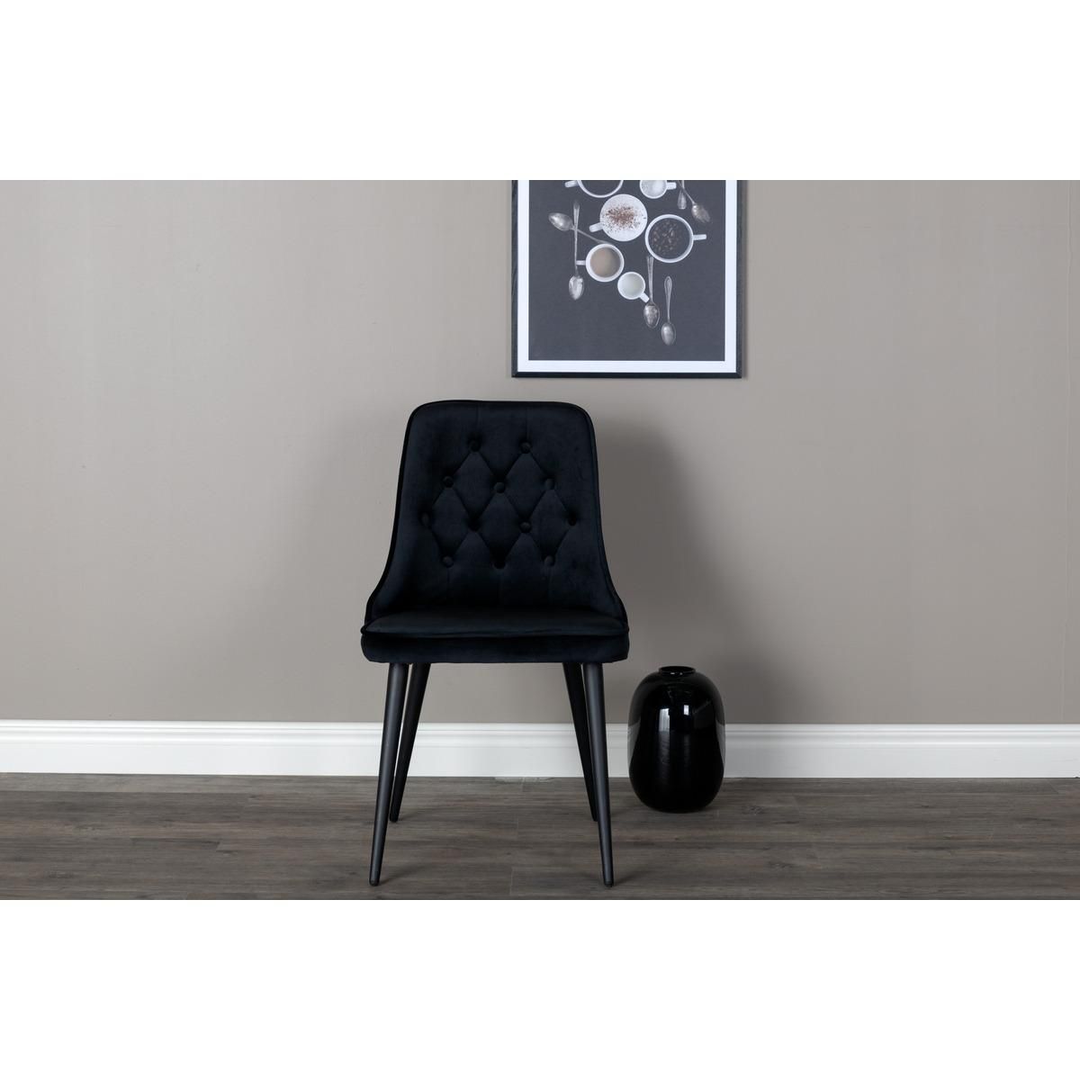 Deze Sino eetkamerstoel is gemaakt van velvet en heeft een elegante zwarte kleur. Het stijlvolle ontwerp maakt Sino tot een verfijnde toevoeging aan uw huis of zakelijke omgeving.
