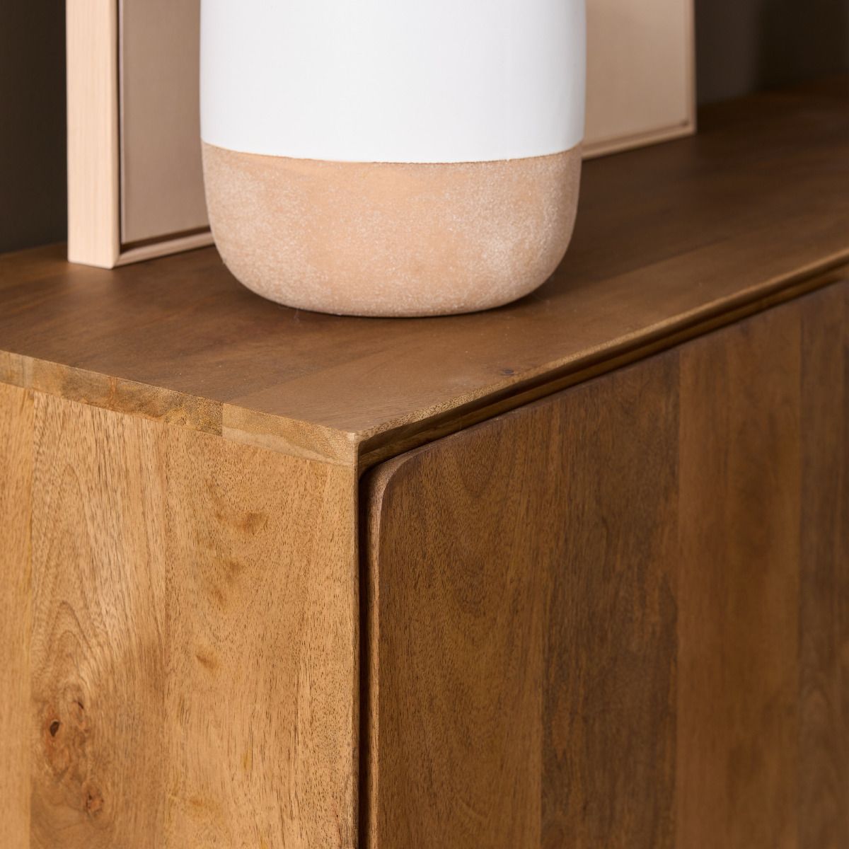 TV meubel Tense is gemaakt van stevig mangohout en straalt natuurlijke warmte uit. Met vier ruime kastdeuren biedt het volop opbergruimte en past dankzij het strakke, minimalistische design in elk interieur. Een stijlvolle en praktische toevoeging aan je woonkamer!