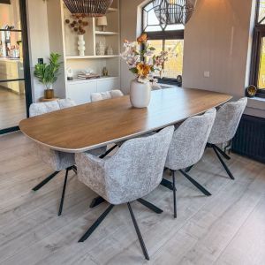 Wil je eenheid in huis creëren? Kies meubels die qua kleur en stijl goed bij elkaar passen. Combineer bijvoorbeeld een stoffen bank met een stevig onderstel en bijpassende fauteuils om te relaxen, of eetkamerstoelen die perfect aansluiten bij de uitstraling van je eettafel voor een harmonieuze look.
