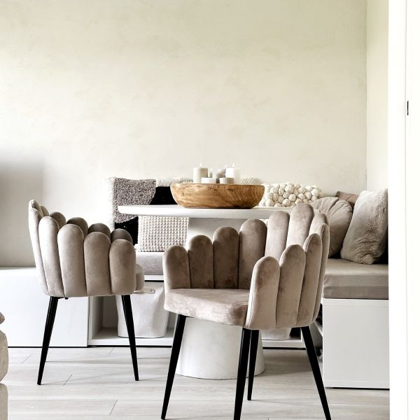 Voor dagelijks gebruik, combineer onze groene eetkamerstoelen het beste met houten eettafels. Dit zorgt voor een warme, natuurlijke uitstraling en brengt een vleugje natuur in je eetruimte, wat zorgt voor balans. Neutrale wandkleuren zoals wit, beige en grijs vormen de perfecte basis waarop verschillende tinten groen prachtig uitkomen. Deze zachte tint brengt frisheid en vrolijkheid in je interieur zonder te overheersen.